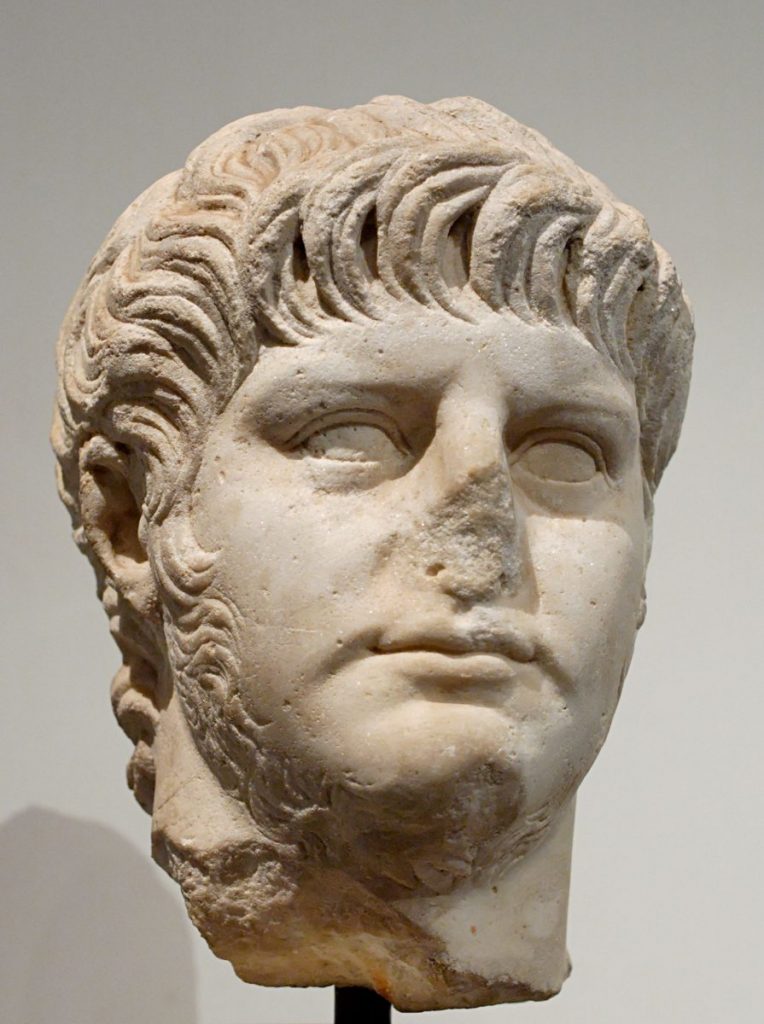 Tête en marbre de l’empereur Néron, vers 54-68 de notre ère – Musée du Palatin à Rome © Marie-Lan Nguyen / Wikimedia Commons
